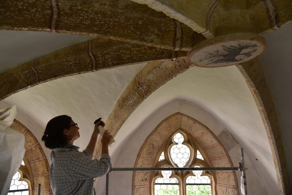 „Ich bin eine freischaffende, akademische Restauratorin mit Sitz in Wien und arbeite auf dem Gebiet der Kunsttechnologie, Konservierung und Restaurierung von Wandmalerei, Putz, Stuck und Architekturoberfläche.“
